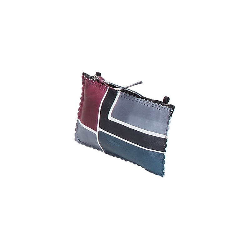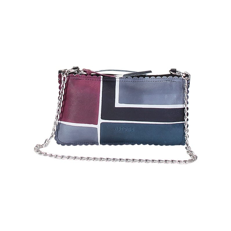 Natural leather small purse, handpainted, with metal shoulder strap. Colored and lively it's suitable for any occasion. All Acquerello handbags can be purchased with matching shoes, wallet, belt and other accessories. Colors violet, grey, black and blue and geometrical pattern.