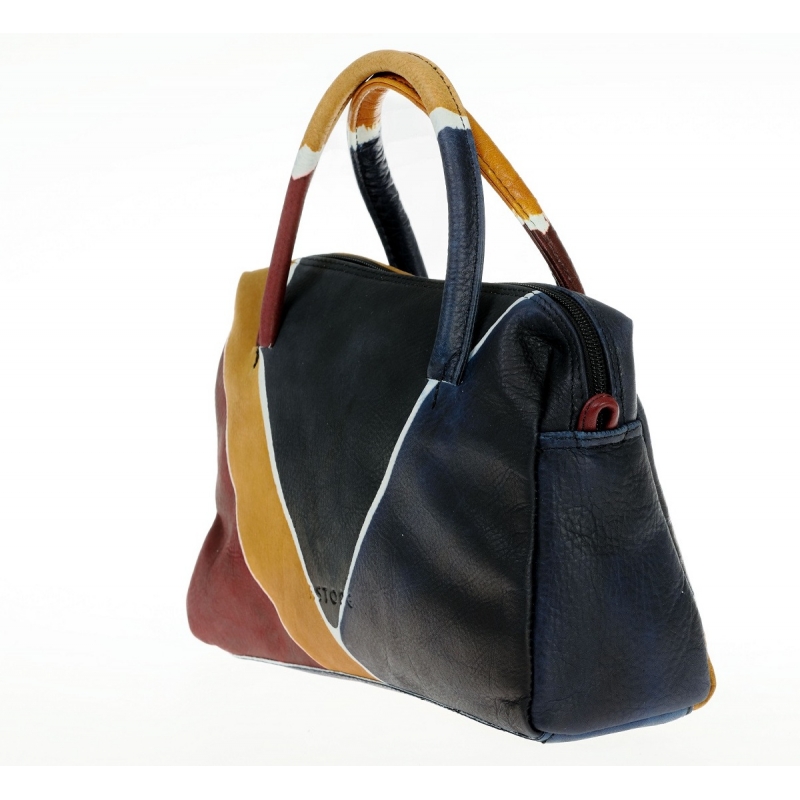 Natural leather handbag, handpainted, with inside pocket and lining inside. Small and comfortable, it can be worn also with the adjustable shoulder strap. Colored and lively, it fits at any age. All Acquerello handbags can be purchased with matching shoes, wallet, belt and other accessories. Colors black, blue, yellow and bordeaux and geometrical pattern.