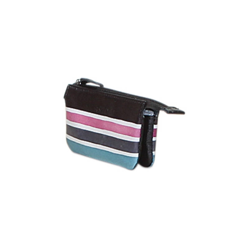 Natural leather sachet key holder, handpainted. 2 compartments and a key ring inside. Perfect idea for a present or simply match it to your Acquerello handbag. Colors pink, light blue, grey and black and geometrical pattern.