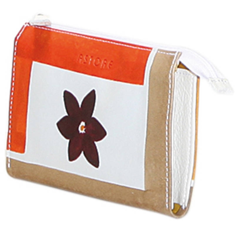 Natural leather sachet, handpainted. 2 compartments and a key ring inside. Perfect idea for a present or simply match it to your Acquerello handbag. Colors orange, yellow, beige and dark violet and flower pattern.