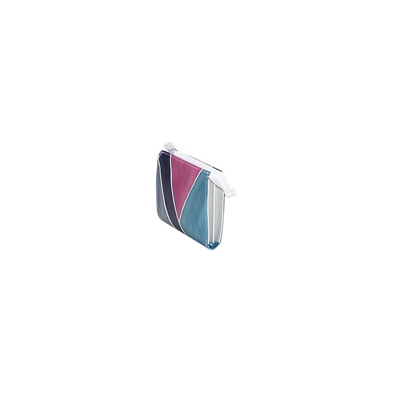 Natural leather sachet, handpainted. 2 compartments and a key ring inside. Perfect idea for a present or simply match it to your Acquerello handbag. Colors grey, pink, light blue and blue and geometrical pattern.