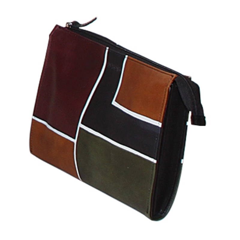 Natural leather sachet, handpainted. 2 compartments and a key ring inside. Perfect idea for a present or simply match it to your Acquerello handbag. Colors black, green, yellow and bordeaux and geometrical pattern.