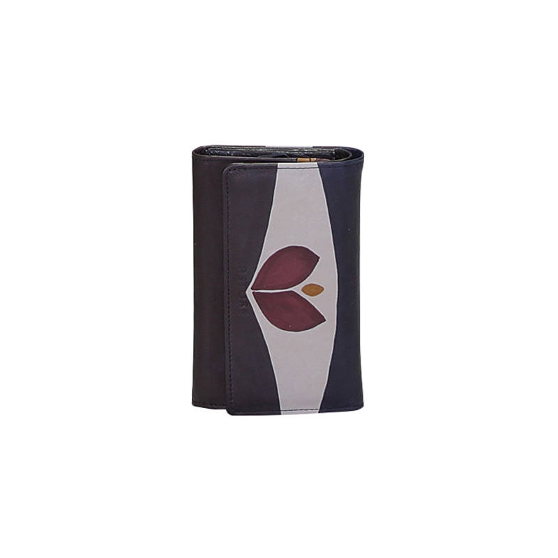 Natural leather wallet, handpainted. Perfect idea for a present or simply match it to your Acquerello handbag. Colors black, blue, yellow and dark violet and tulip pattern.