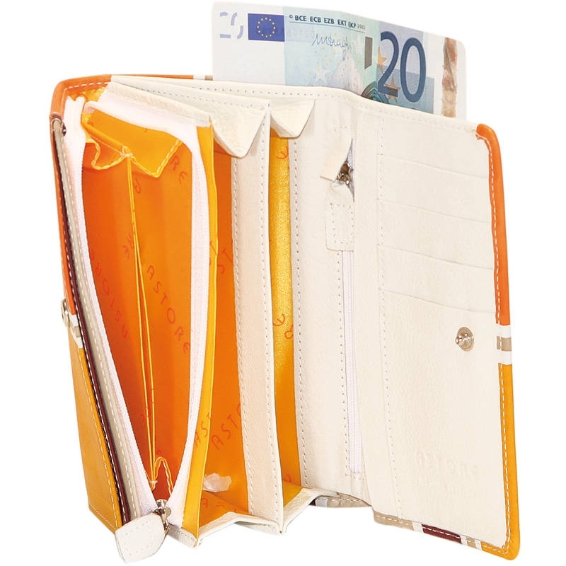 Natural leather wallet, handpainted. Perfect idea for a present or simply match it to your Acquerello handbag. Colors pink, yellow, beige and aquamarine and tulip pattern.