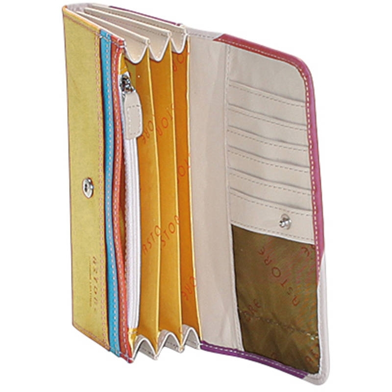 Natural leather wallet, handpainted. Various compartments with coin purse, document and credit cards slots. Perfect idea for a present or simply match it to your Acquerello handbag. Colors fuchsia, green, yellow and light blue and tulip pattern.