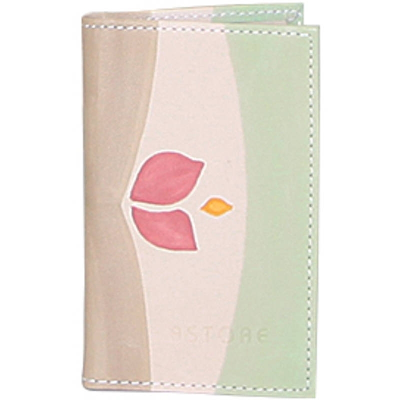 Natural leather credit card holder, handpainted. Perfect idea for a present or simply match it to your Acquerello handbag. Colors pink, yellow, beige and aquamarine and tulip pattern.