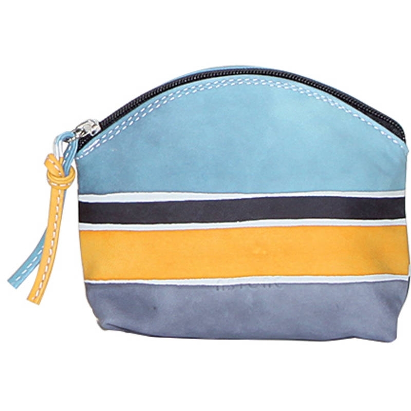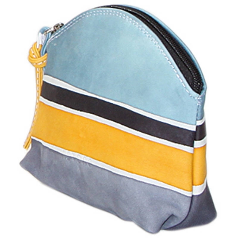 Bustina colorata in pelle dipinta a mano. Ottima come idea regalo o da abbinare alla tua borsa e portafoglio Acquerello. Colore giallo, azzurro, grigio e nero e motivo geometrico.