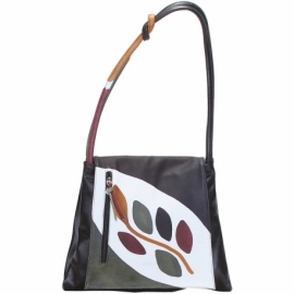 Bustina portachiavi colorata in pelle dipinta a mano. Ottima come idea regalo o da abbinare alla tua borsa e portafoglio Acquerello. Colore nero, verde, giallo e bordeaux e motivo ramo.