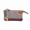 Bustina portachiavi in pelle colorata dipinta a mano. 2 scomparti e un anello per chiavi all'interno. Ottima come idea regalo o da abbinare alla tua borsa Acquerello. Colore grigio, verde, giallo e viola scuro e motivo geometrico.