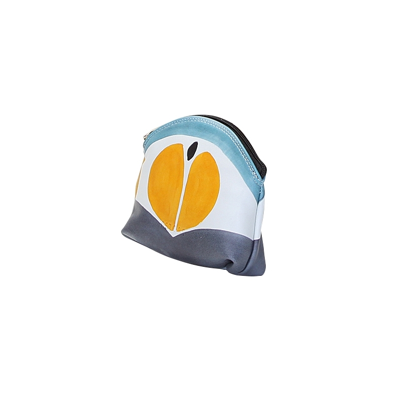 Bustina colorata in pelle dipinta a mano. Ottima come idea regalo o da abbinare alla tua borsa e portafoglio Acquerello. Colore giallo, azzurro, grigio e nero e motivo tulipano.