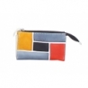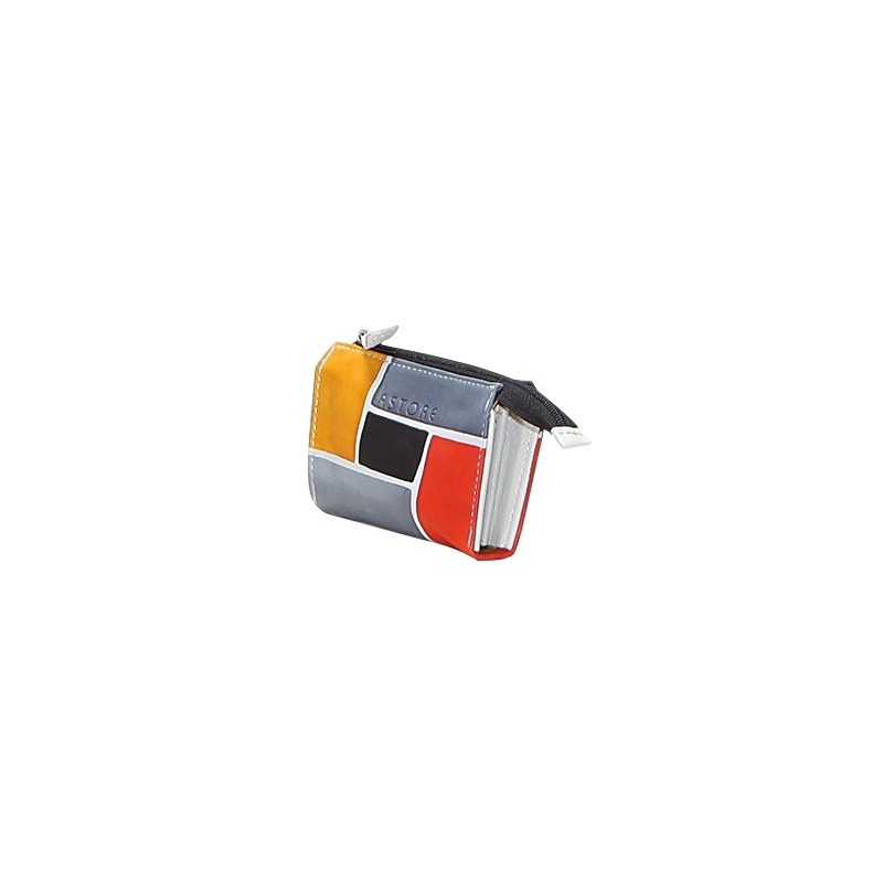 Bustina in pelle colorata dipinta a mano. 2 scomparti e un anello per chiavi all'interno. Ottima come idea regalo o da abbinare alla tua borsa Acquerello. Colori rosso, giallo, grigio e nero e motivo geometrico.