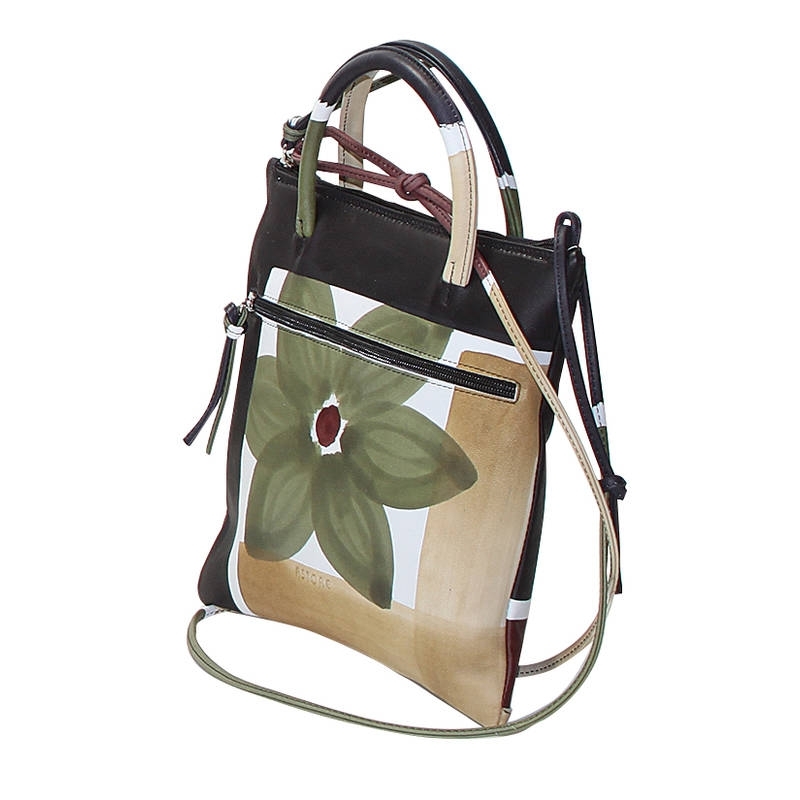 Borsa tracolla in pelle dipinta a mano con tasca esterna, tasca interna e chiusura zip, foderata internamente. Sottile e pratica da utilizzare. Adatta per il tempo libero e l'abbigliamento sportivo, colorata e allegra è l'ideale per le ragazze più giovani. Tutte le borse della linea Acquerello possono essere acquistate in coordinato con scarpe, portafogli, cinture e altri accessori. Colore nero, verde, beige e marrone e motivo fiore.