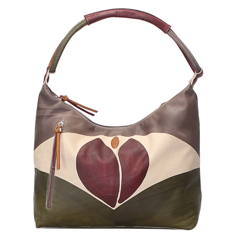 Borsa in pelle dipinta a mano con tracolla multicolore e chiusura zip. E' capiente, ottima per il tempo libero e l'abbigliamento sportivo, ma anche per occasioni più formali si adatta a tutte le età. Tutte le borse della linea Acquerello possono essere acquistate in coordinato con scarpe, portafogli, cinture e altri accessori. Colore grigio, verde, giallo e viola scuro e motivo tulipano.