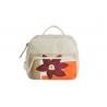 Zaino in pelle dipinta a mano. Pratico e casual, adatto soprattutto per il tempo libero. Tutte le borse della linea possono essere acquistate in coordinato con scarpe, portafogli, cinture e altri accessori. Colore arancio, giallo, beige e viola scuro e motivo fiore.