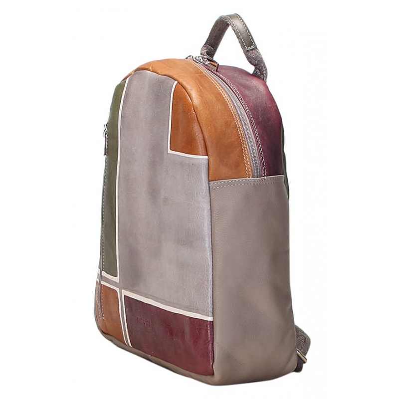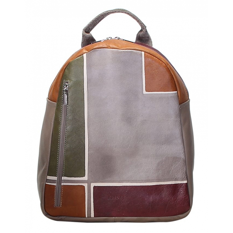 Zaino unisex in pelle dipinta a mano. Pratico e sportivo, adatta soprattutto per uomo. Tutte le borse della linea Business possono essere acquistate in coordinato con scarpe, portafogli, cinture e altri accessori. Colori grigio, verde, giallo e viola scuro e motivo geometrico.