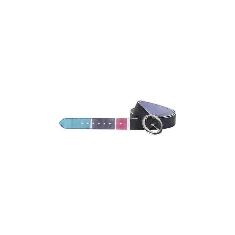 Cintura donna in pelle dipinta a mano con fibbia ovale. Ottima come idea regalo o da abbinare alla tua borsa e scarpe Acquerello. Colore rosa, azzurro, grigio e nero e motivo geometrico.