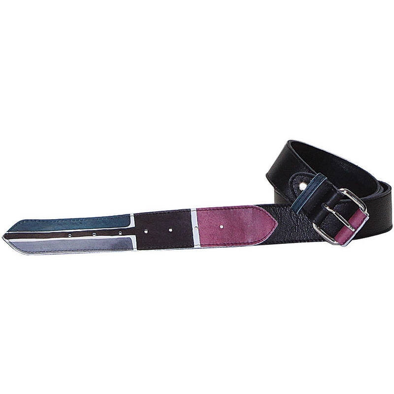 Cintura in pelle colorata dipinta a mano. Ottima come idea regalo o da abbinare alla tua borsa Acquerello Colore viola azzurro blu e nero e motivo geometrico.