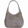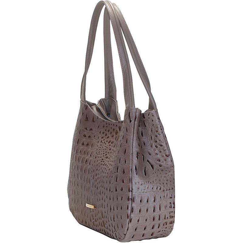 Borsa in pelle stampata in cocco con chiusura zip. Colore taupe. Pratica ed elegante allo stesso tempo, la struttura è molto versatile grazie ai bottoni automatici posti lungo i lati. Colore taupe e motivo tinta unita.