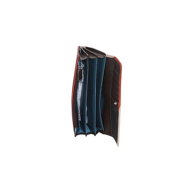 Portafoglio colorato in pelle dipinta a mano. Vari scomparti con porta monete, porta documenti e porta carte di credito. Ottimo come idea regalo o da abbinare alla tua borsa Acquerello. Colore marrone, rosso, arancio e giallo e motivo ramo.