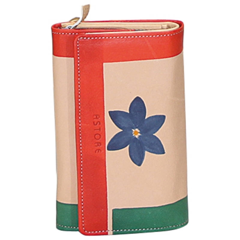 Portafoglio colorato in pelle dipinta a mano. Ottimo come idea regalo o da abbinare alla tua borsa Acquerello. Colore giallo, verde, blu e rosso e motivo fiore.