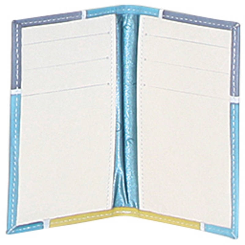 Porta carte di credito colorato in pelle dipinta a mano. Ottimo come idea regalo o da abbinare alla tua borsa Acquerello. Colore giallo, azzurro, grigio e nero e motivo geometrico.