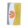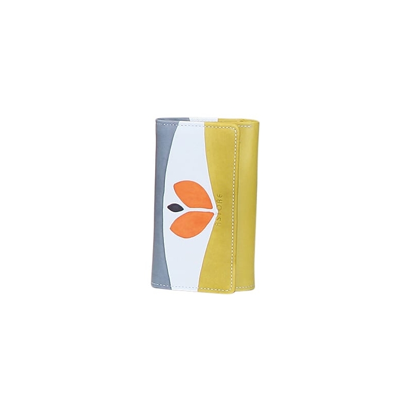Portafoglio colorato in pelle dipinta a mano. 3 scomparti di cui uno con chiusura zip con porta monete e porta carte di credito. Ottimo come idea regalo o da abbinare alla tua borsa Acquerello. Colori grigio, arancione, verde e nero e motivo tulipano.