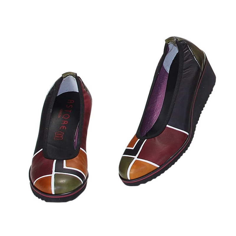 Scarpe ballerine colorate in pelle dipinta a mano. Ideali con un abbigliamento sportivo, ottime per il tempo libero. Da abbinare alla tua borsa Acquerello! Colori nero, verde, giallo e bordeaux e motivo geometrico.